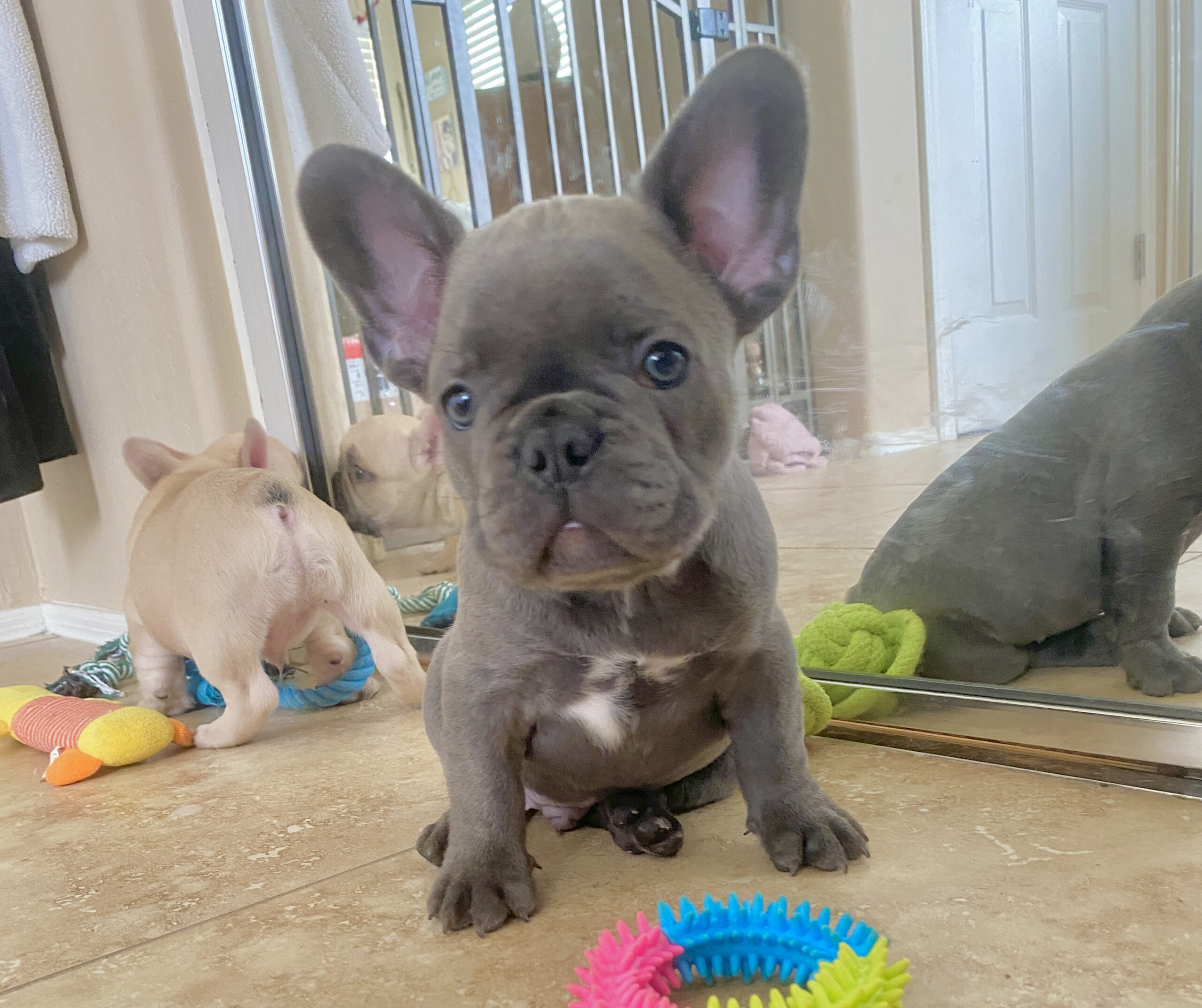All puppies come AKC registered, whether that be just for a pet or if you are choosing to breed them and need full rights. We make sure our pups are quality AKC in all aspects. It’s so important to still stand by the basic standards of the French Bulldog breed, even with the beautiful colors that we have introduced.